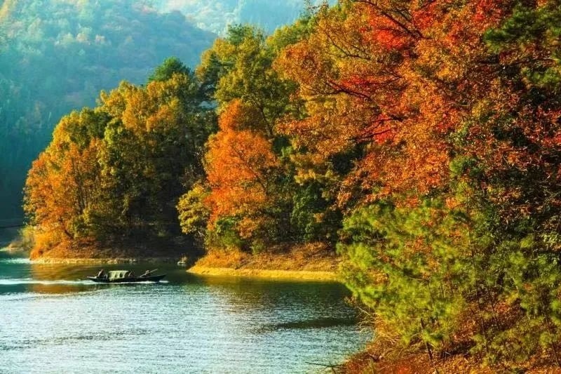 温柔缱绻的秋天与红叶湾的枫叶搭配再合适不过。沿着山间小路拾级而上,树叶婆娑,层层叠叠的黄黄绿绿,让人迷失在这样的幽静里,周围虫儿啾啾,心却是安宁一片。觅一处青石,坐拥一湖碧水静美,把这一抹嫣红细细品赏、典藏。