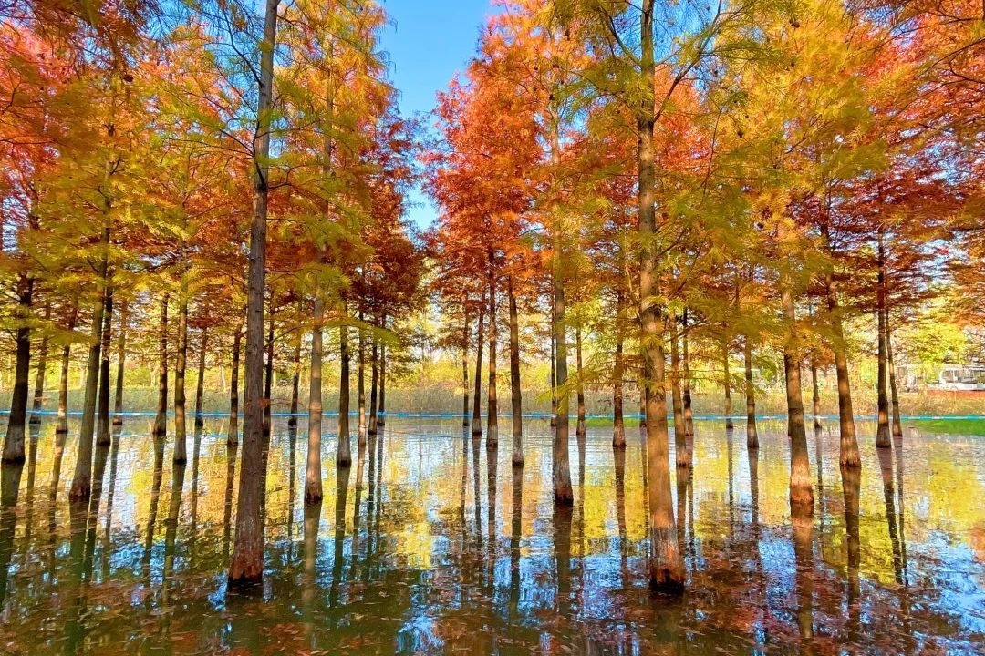 黄海森林公园景区面积1.6万亩,是全国沿海地区最大的平原森林,森林覆盖率高达90%,这里拥有30万株云杨、60万株水杉……植物们在入秋后逐渐改换新衣,一场壮丽的秋日视觉盛宴正在拉开帷幕。