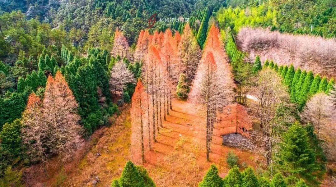 百山祖水杉林红透了天际,每逢金秋,大片的水杉林开始变色,高大地耸立在山林之中,目之所及,一片唯美灵动,让人舒畅又安心。
