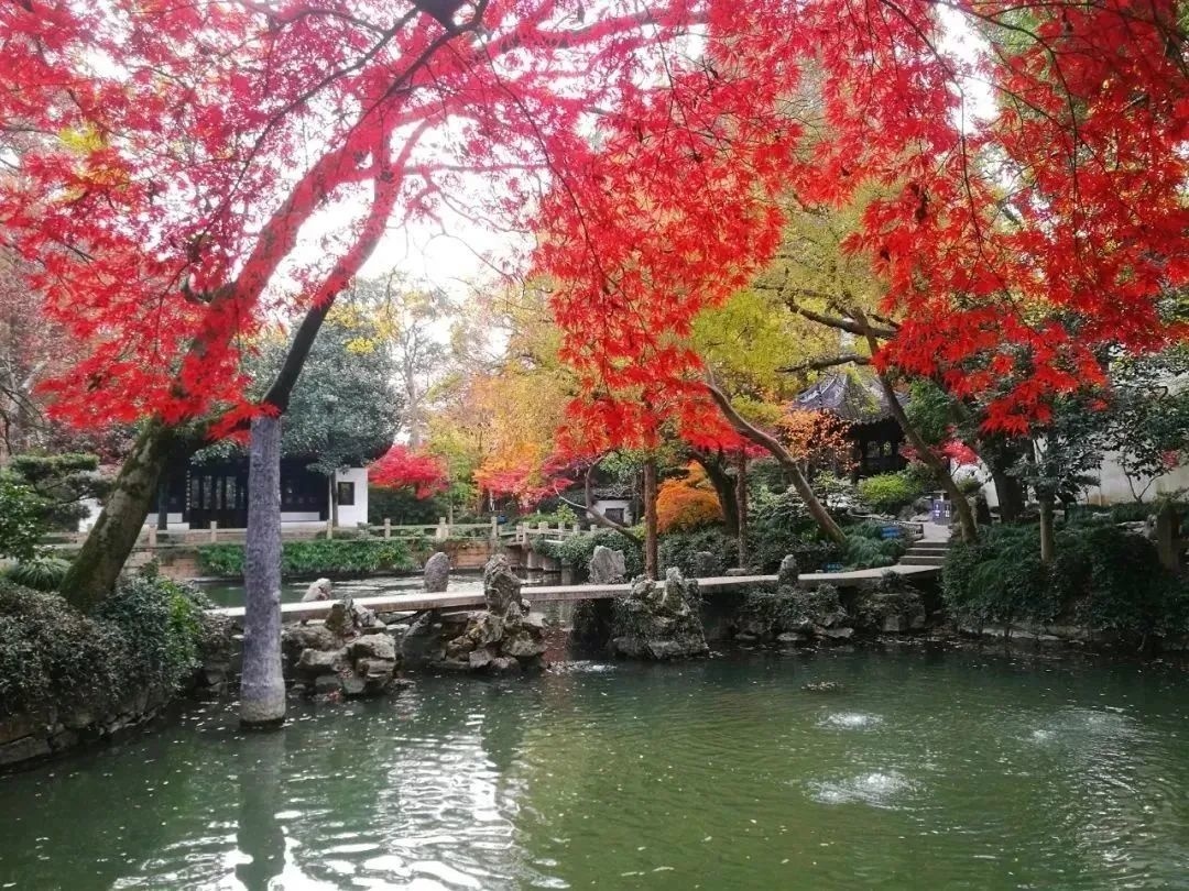 江南的那一叶红枫,曾惹多少墨客流连。每一阵风过,染红的枝叶盈盈在树梢起舞,点缀着苏州的每一个秋日晨暮,绘就一幅如幻秋画。