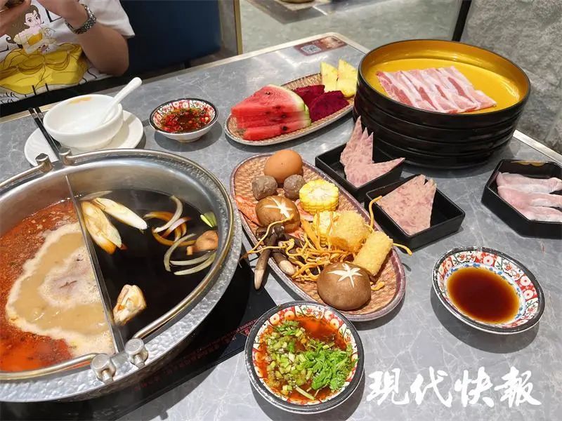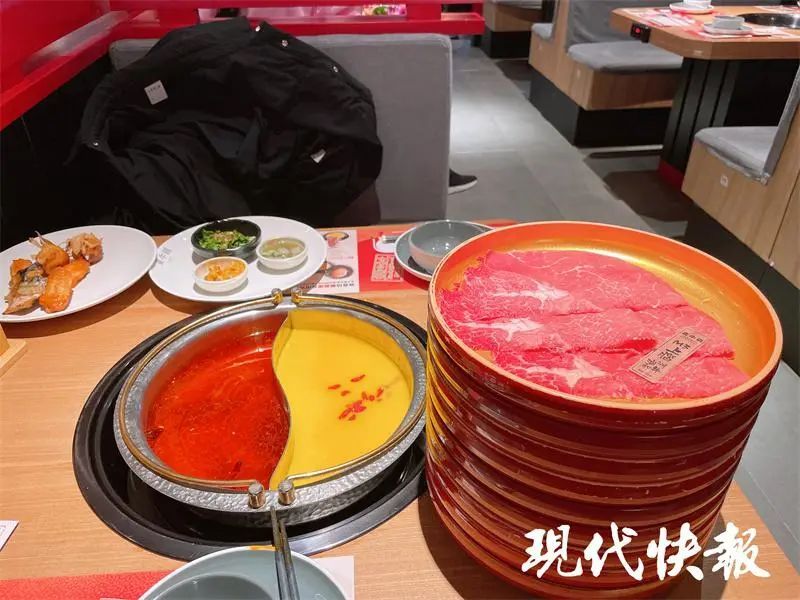 " 寿喜烧火锅自助,和牛、牛上脑畅吃,各个价位都有……"11月2日,正值中午饭点,南京市雨花台区一家综合性商场内,一名新式自助餐品牌店员正在卖力吆喝。现代快报记者注意到,这家自助餐店铺推出4个价位自助餐套餐,分别为139元、179元、239元和269元。每个价位都有相对应的菜单,菜单内的肉品、冰激凌、饮料都可以无限畅吃,价格越贵,羔羊肉、上脑肥牛等优质菜品越多。