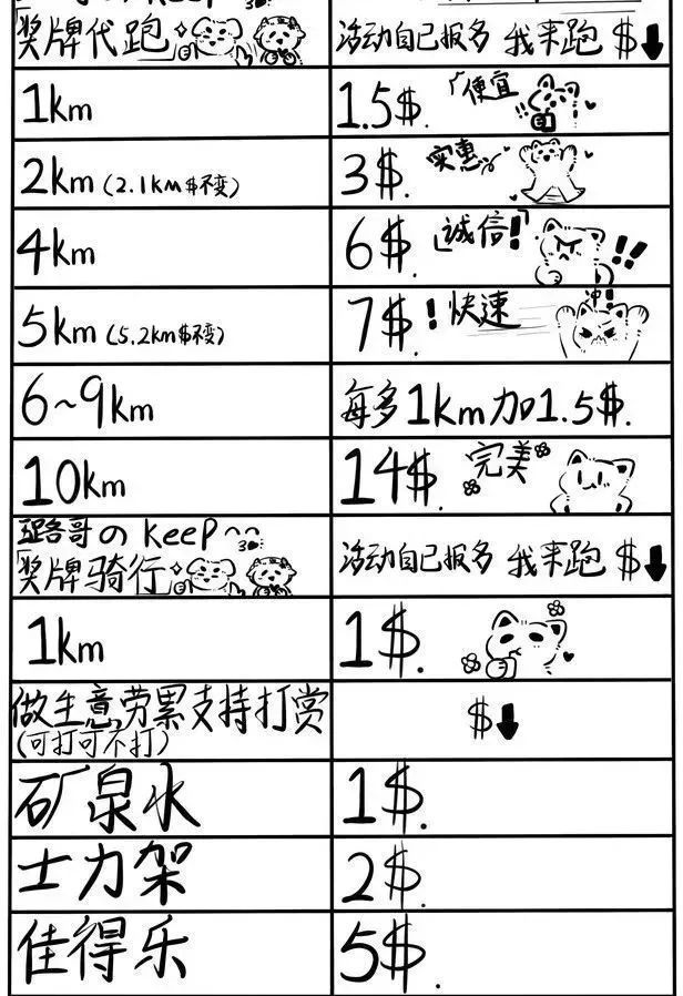 记者注意到,“代跑”的接单价格不高,普遍在每公里0.5元到2元间。卖家多以减肥健身为目的,或本身就是跑步爱好者,顺便赚点零花钱,甚至还有少部分宣称可以免费代跑。