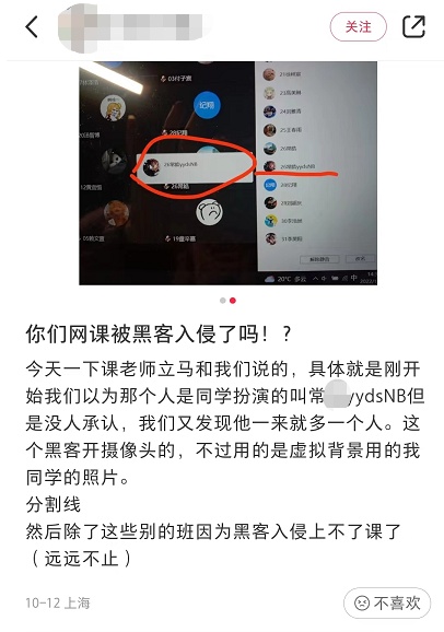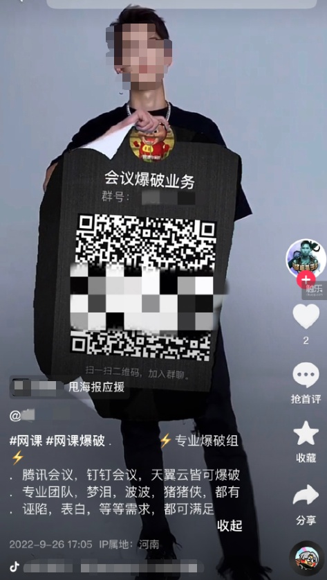 “网课爆破”甚至出现了“专业团队”,公开在社交平台上打广告。