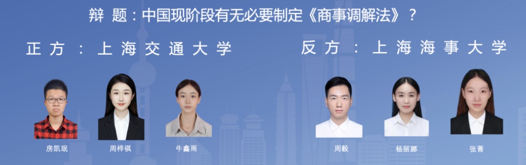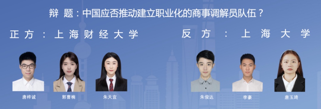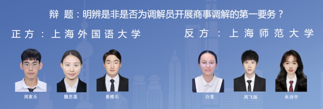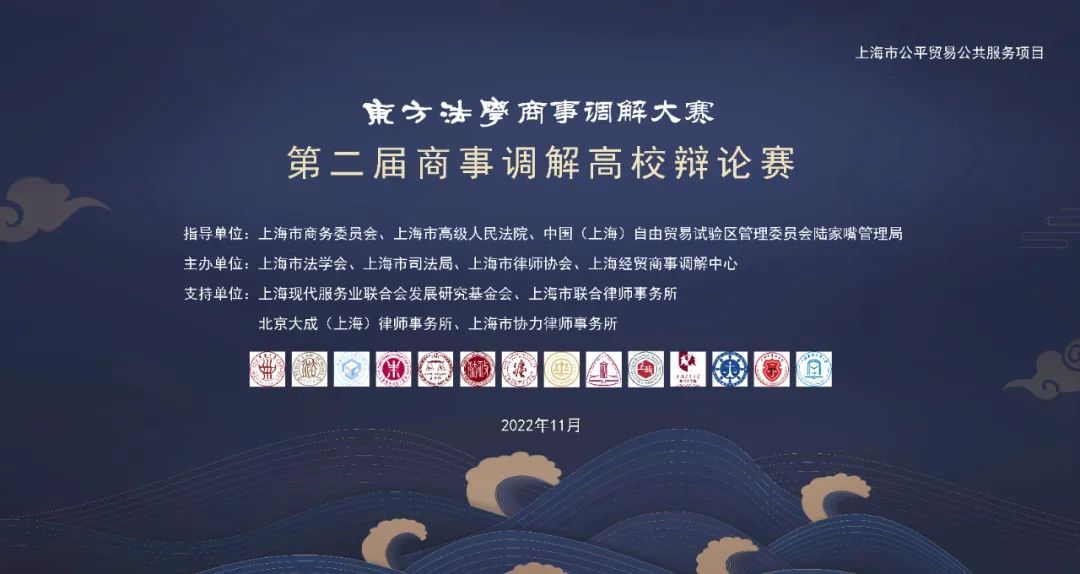 本届大赛由上海市法学会、上海市司法局、上海市商务委员会和上海经贸商事调解中心等单位共同举办,是“上海法治文化宣传月”的重要活动。主办方藉由此辩论赛,培养、发现法科学生中的辩论与调解人才,增进市场主体对商事调解的认同与选择,促进商事调解蓬勃发展,推动多元解纷机制的创新与实践,助力上海国际一流营商环境建设。欢迎对商事调解感兴趣的专业人士、高校学生在线观摩,为自己喜欢的赛队加油鼓劲。