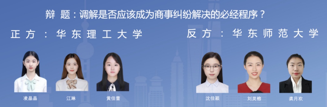 作为“东方法学商事调解大赛”赛事之一,第二届商事调解高校辩论赛即将拉开帷幕,11月6日初赛开赛。本届辩论赛有来自复旦大学、上海交通大学、同济大学、华东师范大学、华东政法大学、上海财经大学、上海政法学院、上海海事大学、上海对外经贸大学、上海大学、华东理工大学、上海师范大学、上海外国语大学、东华大学等14所沪上著名高校的20支队伍参赛,分中英文辩论;比赛分为初赛、复赛、半决赛与决赛四个阶段。比赛全程将通过哔哩哔哩等平台直播。