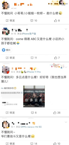 坦然承认自己不懂“梗”,也没什么不好。有网友表示,以前只敢在谈话的间隙,偷偷用搜索引擎查“xxx是什么意思”,不敢让别人知道。如今,不少网友都会在社交平台上发问“不懂就问,xx是什么梗”,也会得到网友们热心答复。