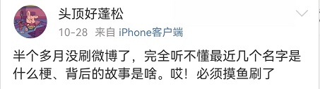 但人毕竟不可能24小时刷手机。除了少数冲浪达人,对于一般网友而言,全网刷屏的陌生“梗”,只让人疲于“刷”命,只想说:累了,不想再追了。