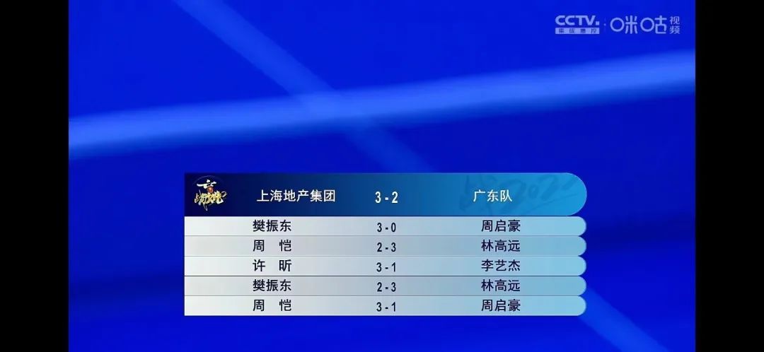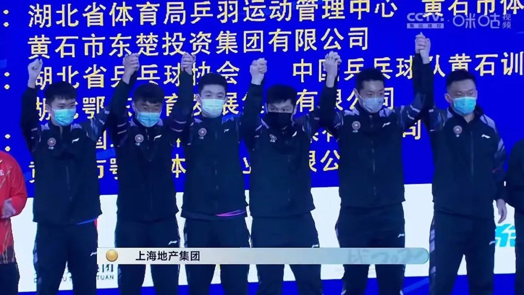 11月6日,2022年全国乒乓球锦标赛在湖北黄石结束了男子团体决赛的争夺,经过近4小时鏖战,上海地产集团队以3比2战胜广东队,获得冠军!