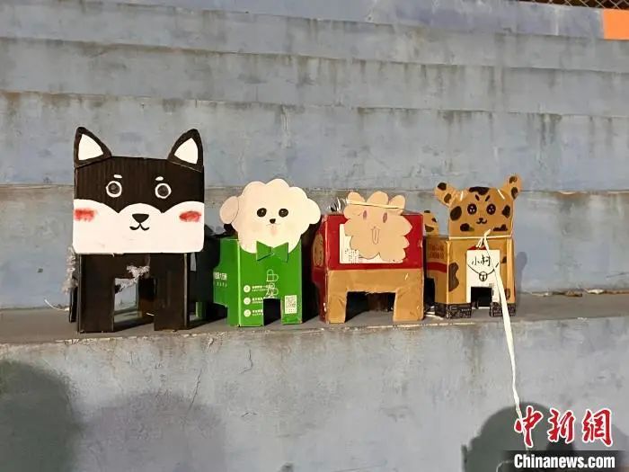 “纸盒狗”制作简易,只需一些废旧纸盒和随手可见的小玩意儿,但大学生的无穷创意给每个“纸盒狗”都赋予的独特气质,或搞笑,或可爱,或威风凛凛,经互联网传播后火遍全国高校。