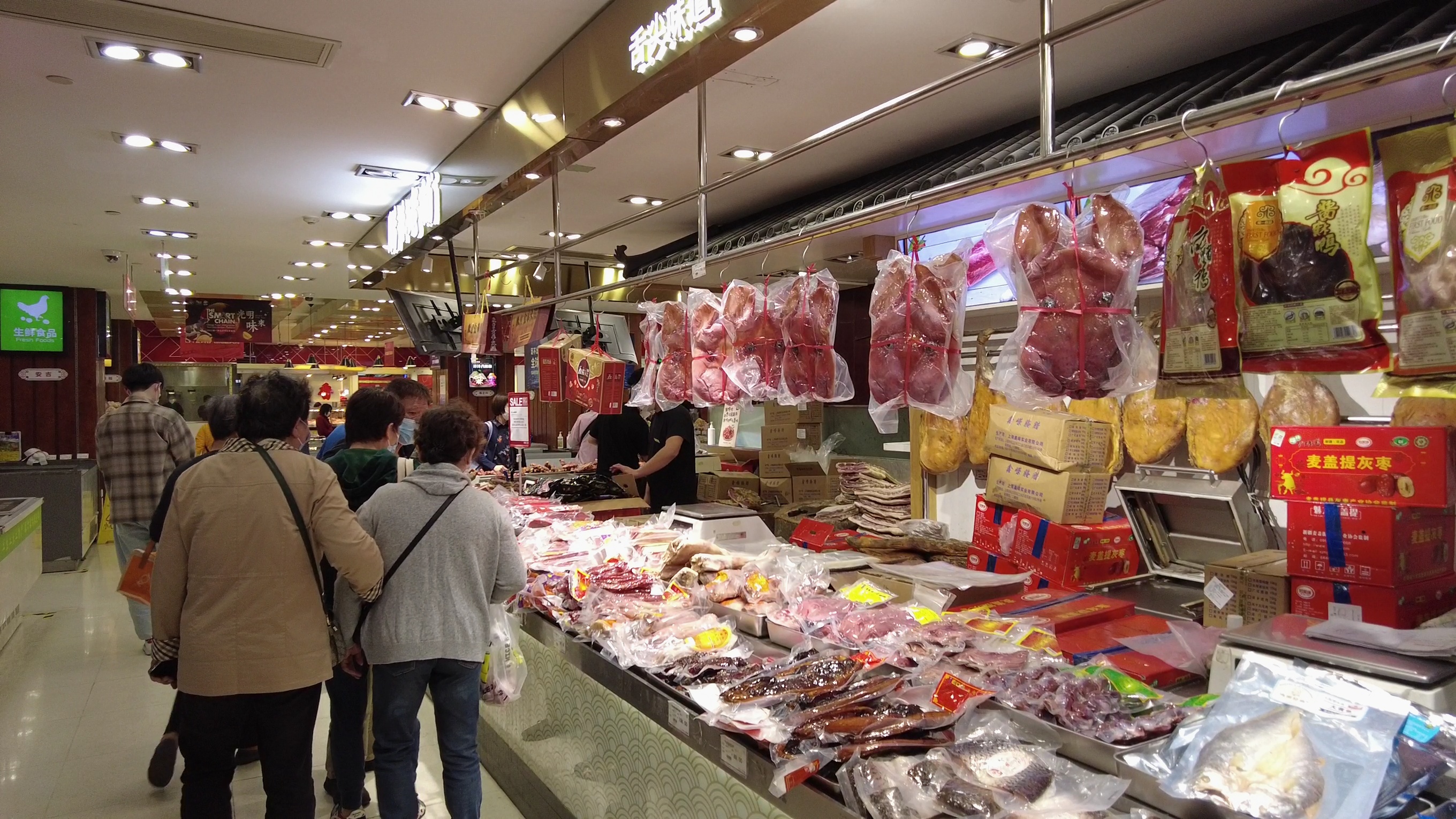记者扫码进入店后发现,食品店内的所有柜台都处于正常营业状态,光顾的市民不少,有些畅销的柜台,购买的人群还排起了队。