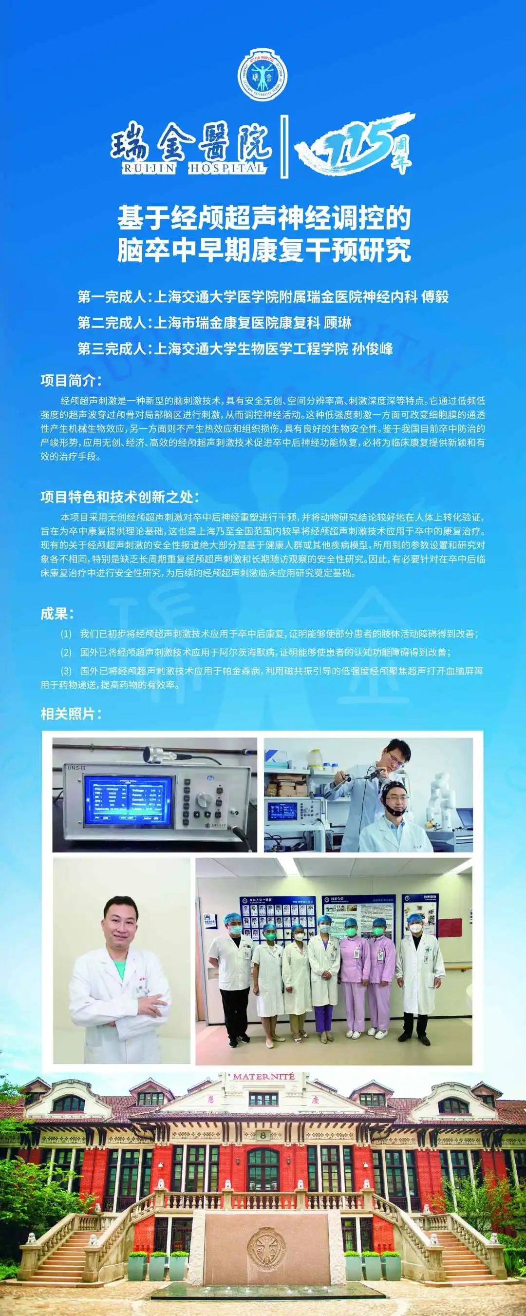 这个技术是上海乃至全国范围内较早将经颅超声刺激技术应用于卒中后的康复治疗,对于丰富瑞金医疗技术水平和竞争力具有重要意义。