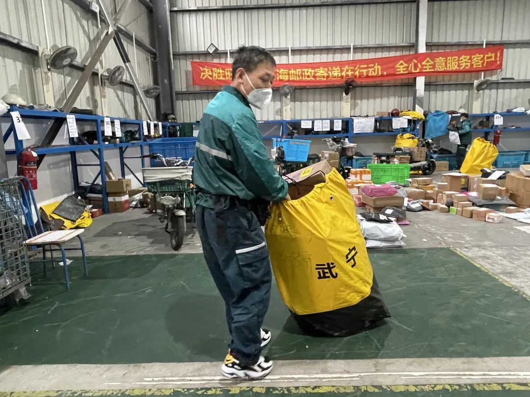 早上7时许,记者来到普陀区礼泉路140号甲1号仓,只见武宁营业部的工作人员正在分拣满地的快递包裹,一车接一车的货物不断运送来等待被分拣、投递。记者注意到,现场工作人员虽多,但井然有序,仓库被分为四个区域,所有包裹按照不同颜色的邮袋分类打包。据现场负责人介绍,不同片区对应不同邮袋颜色。中国邮政集团有限公司上海市普陀区分公司武宁营业部经理徐雯平说:“营业部通过科技赋能,使用了自动分拣设备,提高了员工的分拣速度,提高他们的投递效率;采取了片区化的邮袋,来区分每个片区的邮件,便于投递员区分自己的邮件;通过拨点的形式,把所有的邮件拨到投递员指定的地方。”