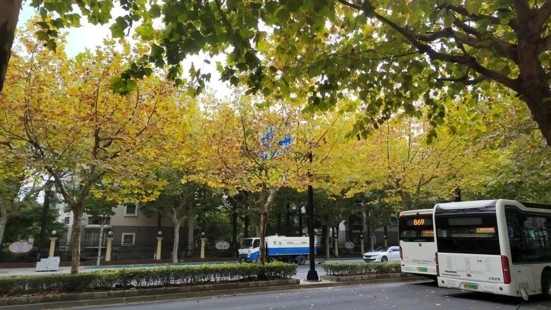 万里不仅有美丽的公园秋景,辖区内的多条道路也有其独特的秋季美景。2021年获评上海市林荫道的真金路(富平路-富水路),近日也是开启了渐变模式。750米长的道路两侧栽种的梧桐树,树冠张开,树枝上叶片层层叠叠,部分叶片已经呈现出灿烂的金黄色,一阵风拂过,落叶美景乍现。“这些树种了近20年了,我们看着它从小树长成现在的大树。夏天遮阳避日,秋天看落叶美景,还是很美的。”附近的居民说起这条路,获得感满满。