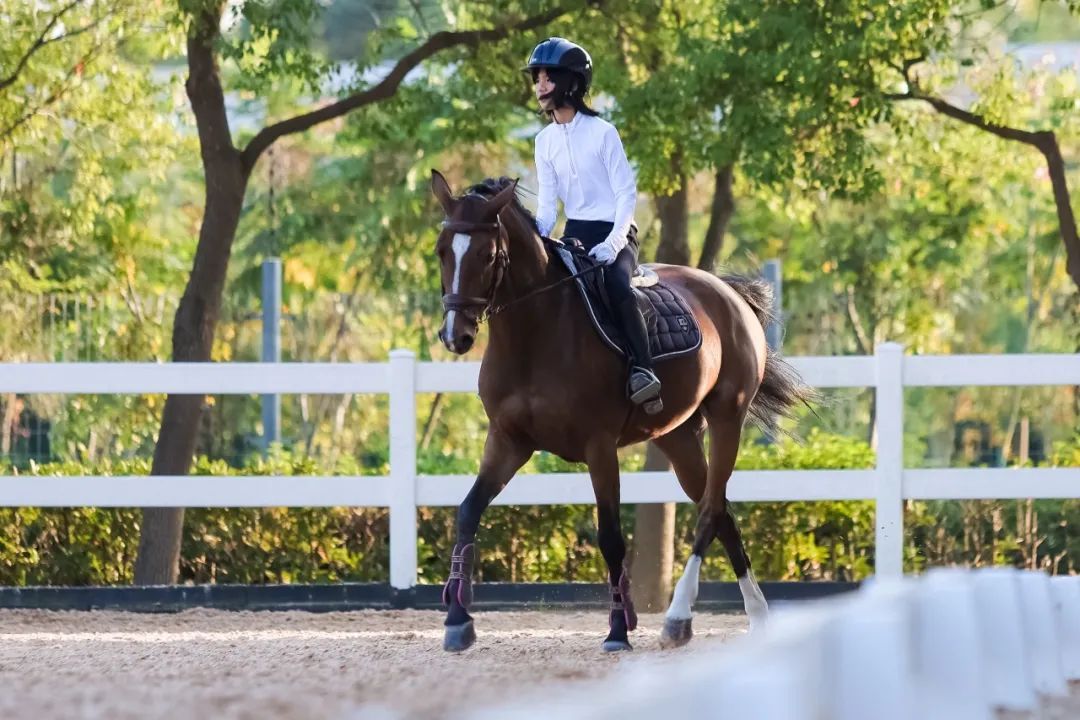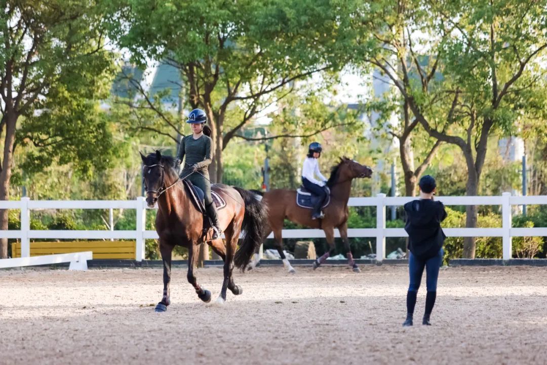 国际盛装舞步骑士饶嘉怡就是这样成长起来的,比赛前她自己给马编辫子,自己负责把赛前的所有装备都准备好装到车里,如果那场比赛她只带一两匹马,她就需要自己梳理马匹、自己给马热身、给马铺床铲粪、还有遛马。