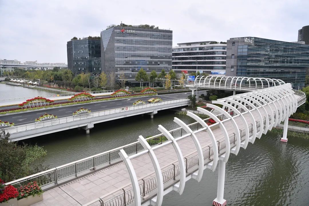 连续五届进博会,通过新增生态水景、改造老旧设施、提升绿化景观等一系列措施,让这条进博会核心区域河段旧貌换新颜,渐成为清澈见底、水草纤毫毕现的亲水休闲体验。