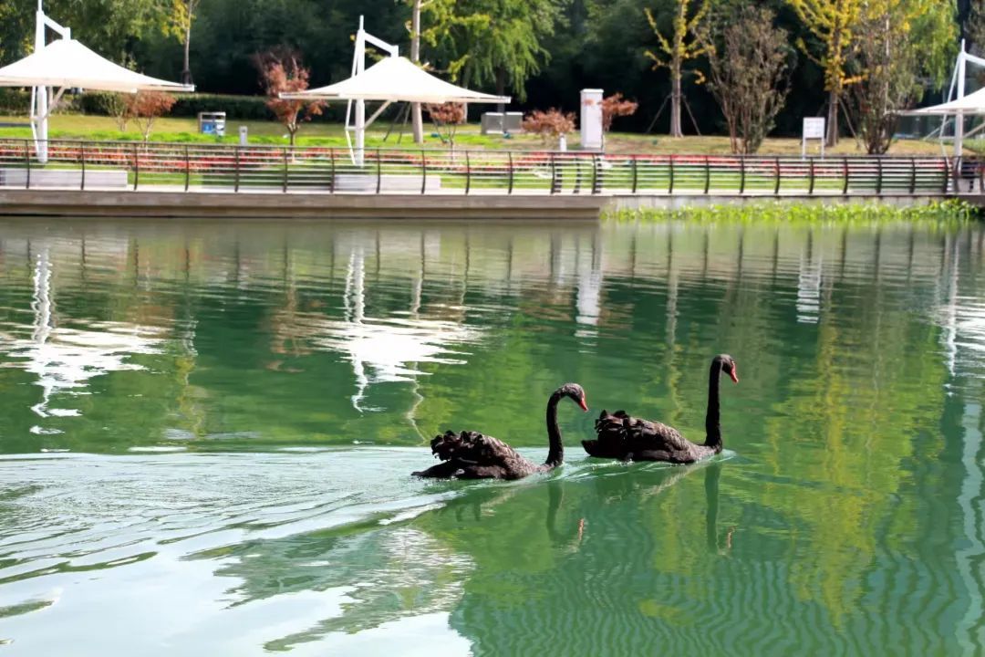 11月初的上海,天高气爽,格外斑斓。“四叶草”旁的北横泾上,黑天鹅游曳在清澈的河水中。
