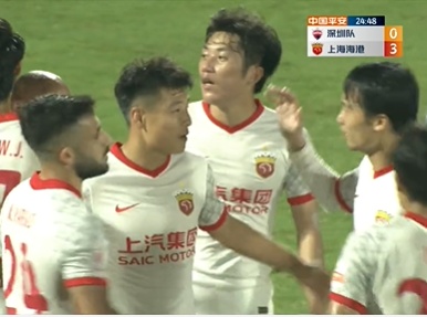 上半场上海海港3:0深圳队。
