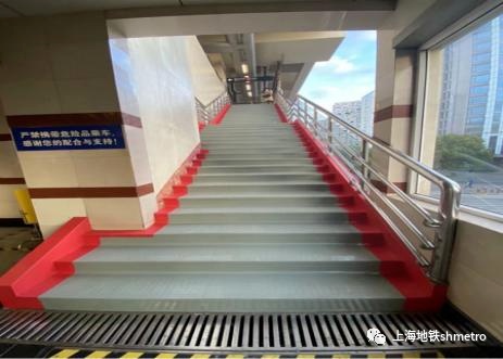 为了保障乘客出行安全,降低施工对乘客出行的影响,1号线管理部与富锦路站区经过前期的积极沟通和协调准备,制定了楼梯改造期间的客运组织方案。车站结合潮汐客流的特点,将整修时间制定在双休日,对楼梯重新铺设防滑层。
