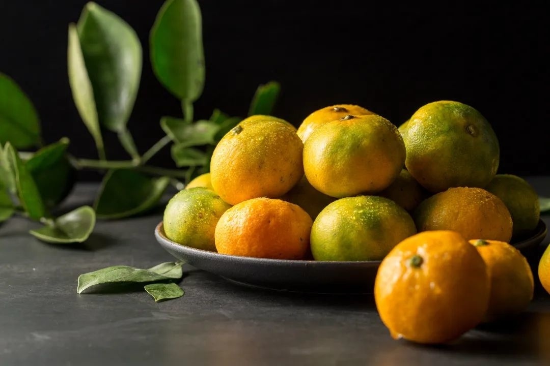 橘子中含有较为丰富的β-胡萝卜素,如果一次吃得过量,或者短期内摄入太多,血液中高浓度的类胡萝卜素就会沉积在皮肤角质层和黏膜部位,出现皮肤发黄。
