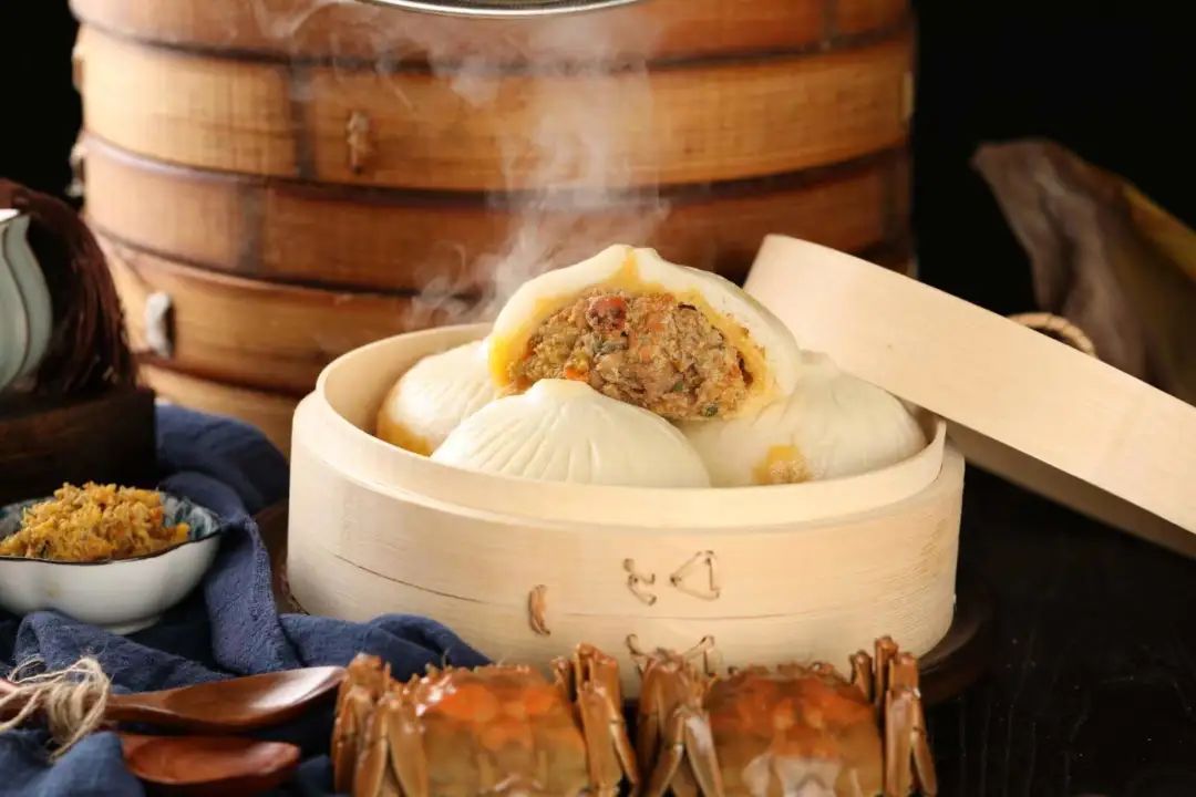 当然少不了大名鼎鼎的经典名点——靖江蟹黄汤包。