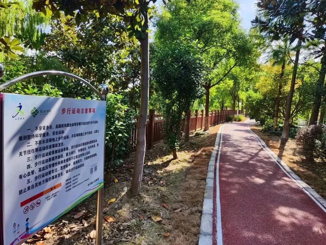 新建步道每隔50米设置一处里程标识,并在进出口设置警示标语引导市民进入步道,安全锻炼。步道两旁设置市民健身步道示意图以及运动宣传标语,市民在锻炼的同时还可随时学习健身技能。