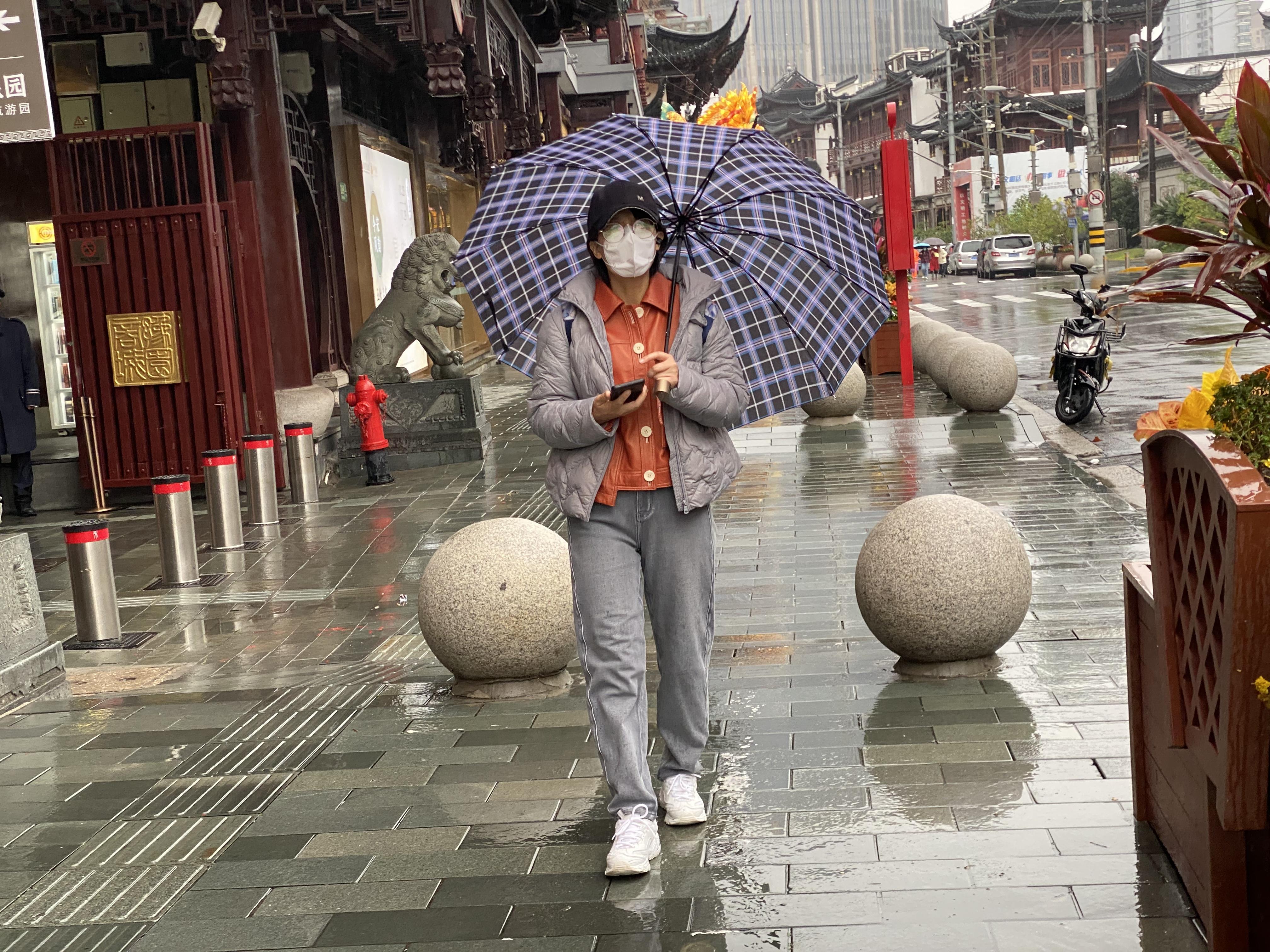告别昨天的湿热,应对今天的降温,市民们大都将轻薄的外套换成了更厚的外套,棉服、羽绒服也不时可以看到,还有怕冷的人们已经戴起了围巾,市民们说,原本就降温的天气,再加上下雨,身上各处湿漉漉的,体感一下子就变得阴冷,而想到明天还要更冷,“畏寒”的情绪有些上头。