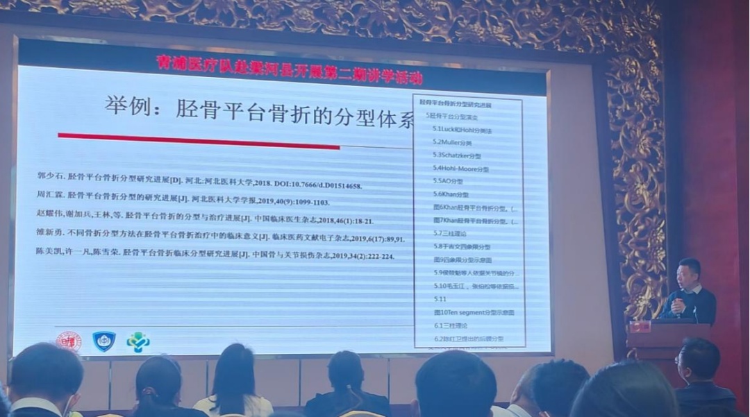 普外科主治医师沈晓伟介绍“肝胆外科微创手术”,并讲解“围手术期血栓预防与管理”。神经内科主治医师田青就“急性缺血性脑卒中”及“头晕、眩晕”两大临床问题的诊疗进展进行介绍。肾内科主治医师李肖瑛围绕临床较为常见的“高尿酸血症的诊治”做了细致地阐述,并为县医院同仁讲解了系统性红斑狼疮最新的诊疗指南。骨科翟启麟博士从“胫骨平台骨折的分型”入手进行剖析,讲解医学文献检索和综述写作方法,就近期在陇川县人民医院主刀完成的一例复杂手术与当地骨干医师进行热烈讨论与互动。呼吸与重症医学科主治医师王云除介绍了临床常见急危重症“肺栓塞”的诊治,还结合科室管理工作,分享“如何做好一名科室主任”。