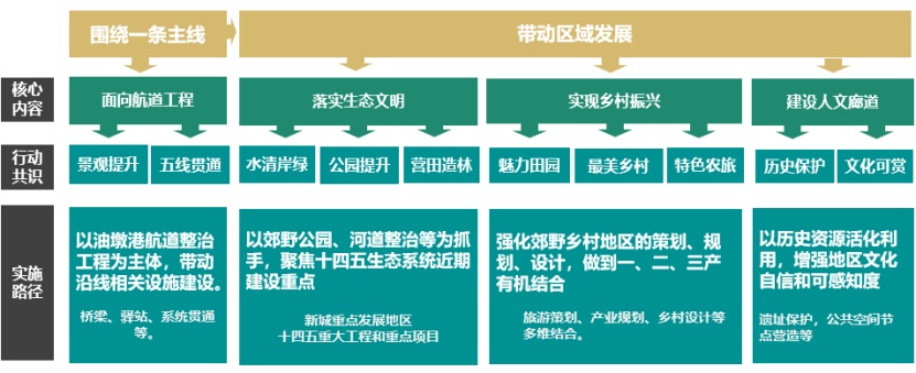 兼顾城镇和乡野,以“画卷”为愿景、以“蓝图”为指引,按照“面向工程、聚焦重点、多维协同”的工作思路,形成“十大行动”共识,全面带动油墩港沿线发展,彰显超大城市郊野乡村的稀缺价值,成为近悦远来、充满生机的魅力乡野空间。