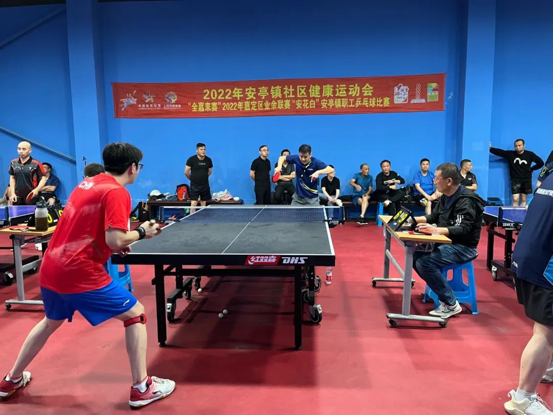 由安亭镇文化体育服务中心、上海市社区体育协会主办,嘉亭荟城市生活广场、安亭社区体育健身俱乐部、安亭社会体育指导站承办的2022年安亭镇社区健康运动会暨 “全嘉来赛”2022年嘉定区业余联赛暨“安花白”安亭镇职工乒乓球比赛火热开赛,“安花白”三地企业、村居的乒乓球爱好者组成的12支队伍50余人参赛。