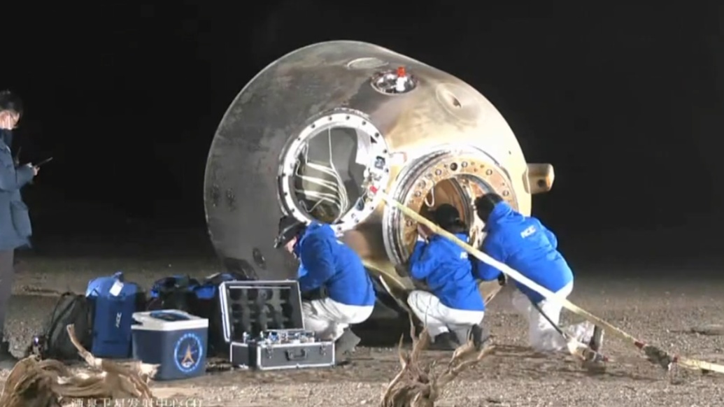 北京时间12月4日20时09分,神舟十四号载人飞船返回舱在东风着陆场成功着陆。5日凌晨,圆满完成神舟十四号载人飞行任务的航天员陈冬、刘洋、蔡旭哲,乘坐任务飞机平安抵达北京。