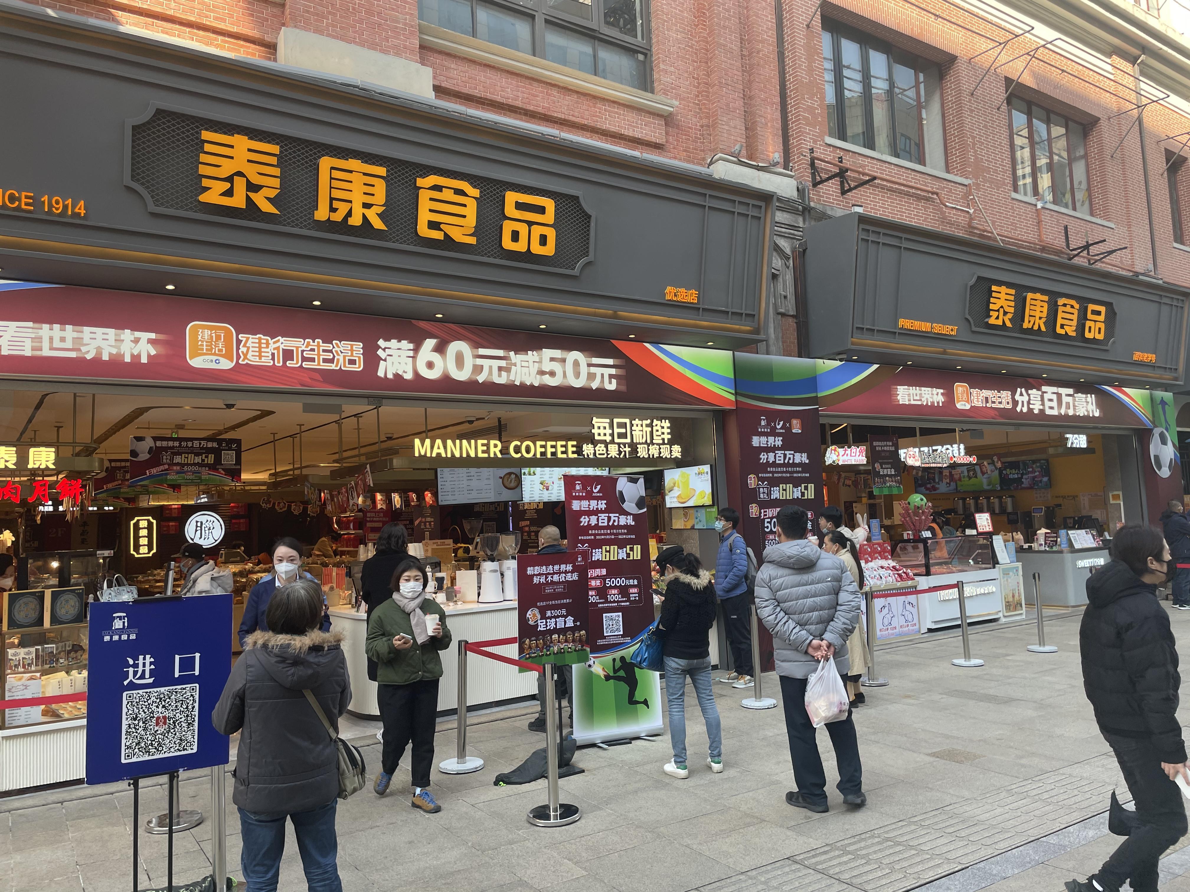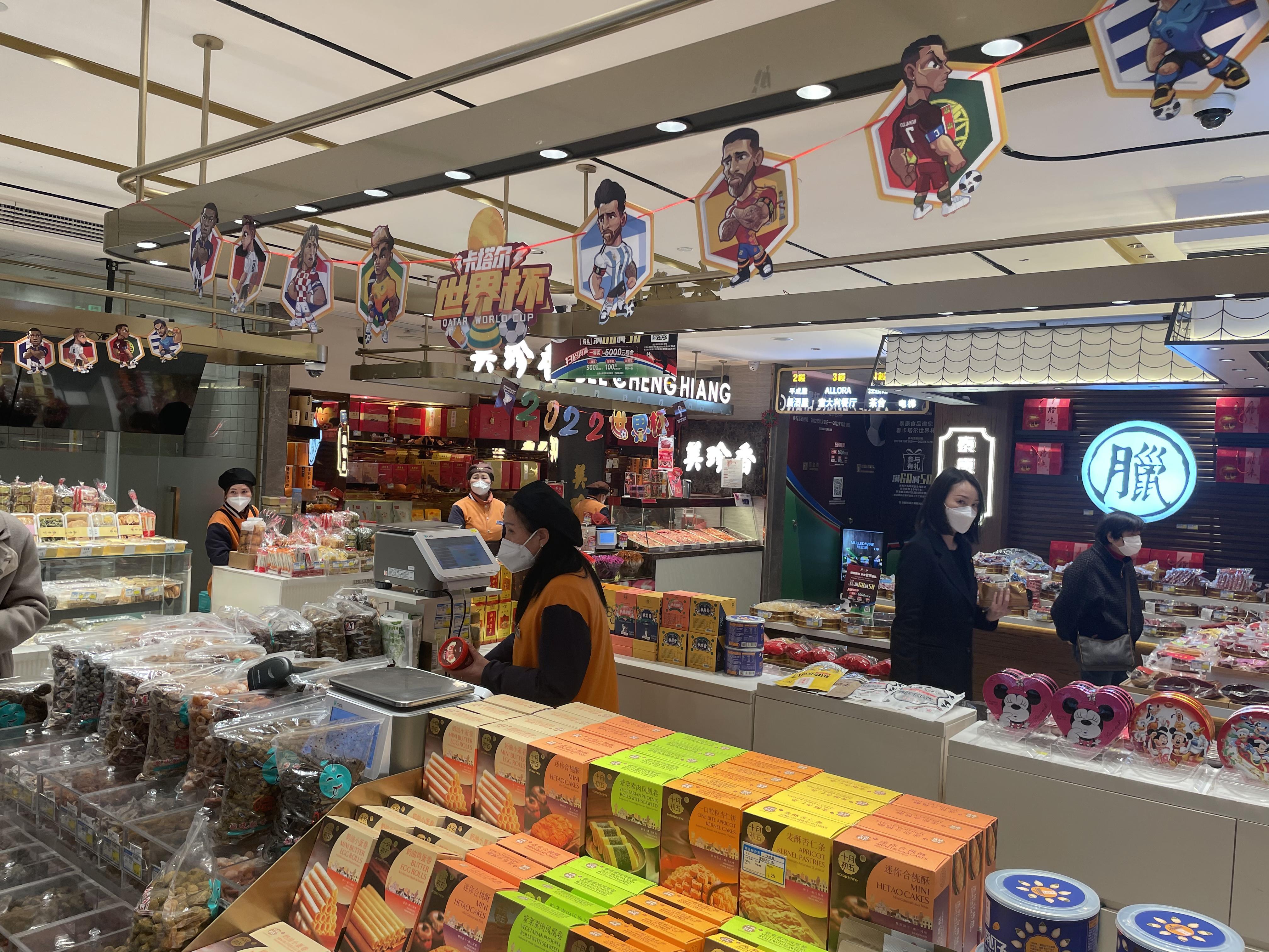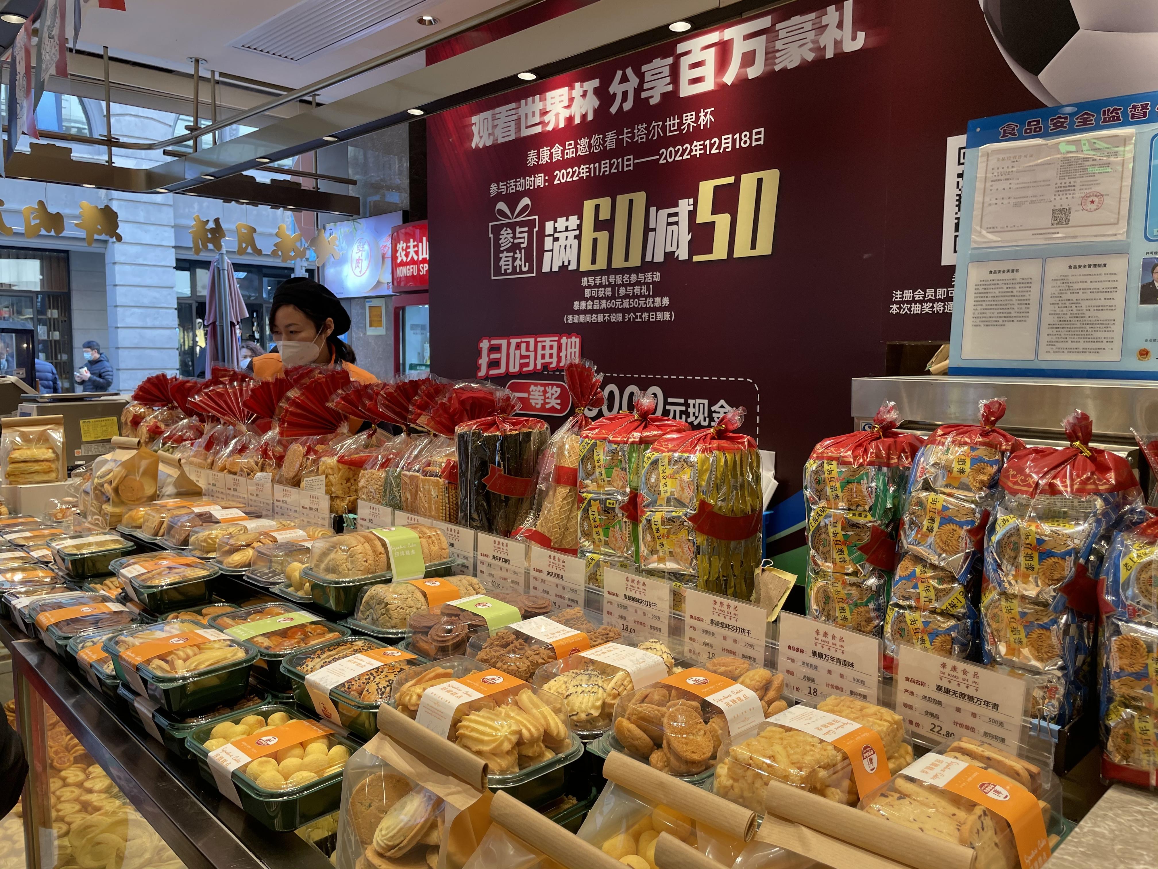 泰康优选店相关负责人告诉记者,作为老字号年轻化的探索,此次该店借世界杯东风,推出一系列营销活动。除了银行满减活动外,消费满300元还可以抽取球星盲盒。同时,位于三楼的意大利餐厅Allora,不仅每天直播世界杯球赛,更将作为五星体育线下分会场之一,直播相关赛事并与球迷激情互动。在“世界杯经济”的带动下,目前炒货、糕点等明星产品的销量已上升三成左右。