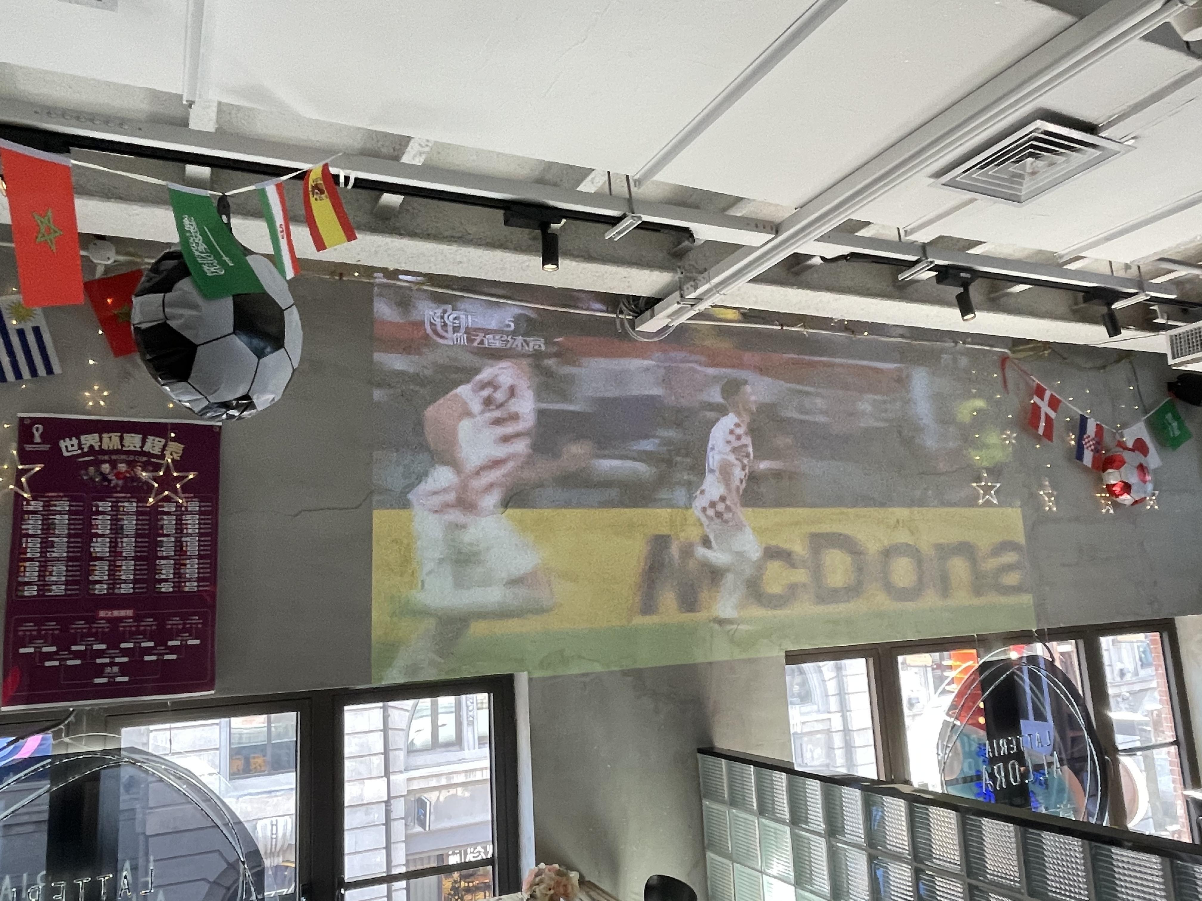 在南京东路150号泰康食品优选店,这里的世界杯氛围格外浓郁。进店即可看见完整赛程表,抬头望去更是挂满多支参赛球队旗帜,“满60减50”的海报也非常显眼。