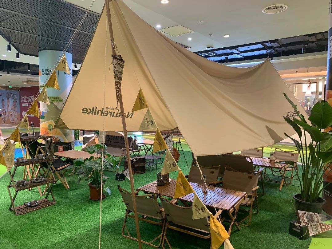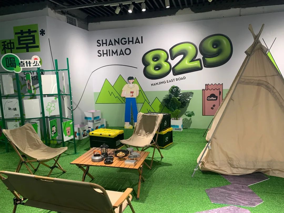 搭乘“世茂飞天梯”,进入商场,竟然还能感受到“露营”的乐趣。世茂广场L2层连廊、L3层东区小鸟杯咖啡两侧搭建了一片露营场地,为大家提供咖啡、休憩的空间,同时也超容易出片~