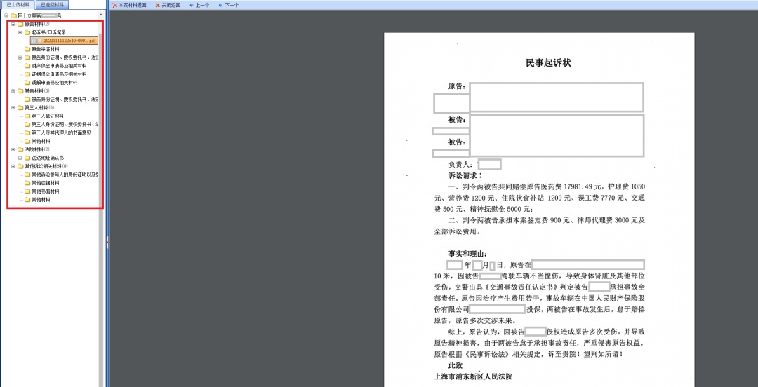 注意:案件要素应与提交的电子材料保持一致,若立案申请人未完整填写相关信息,立案法官可通过起诉材料模块查阅电子材料进行核对。