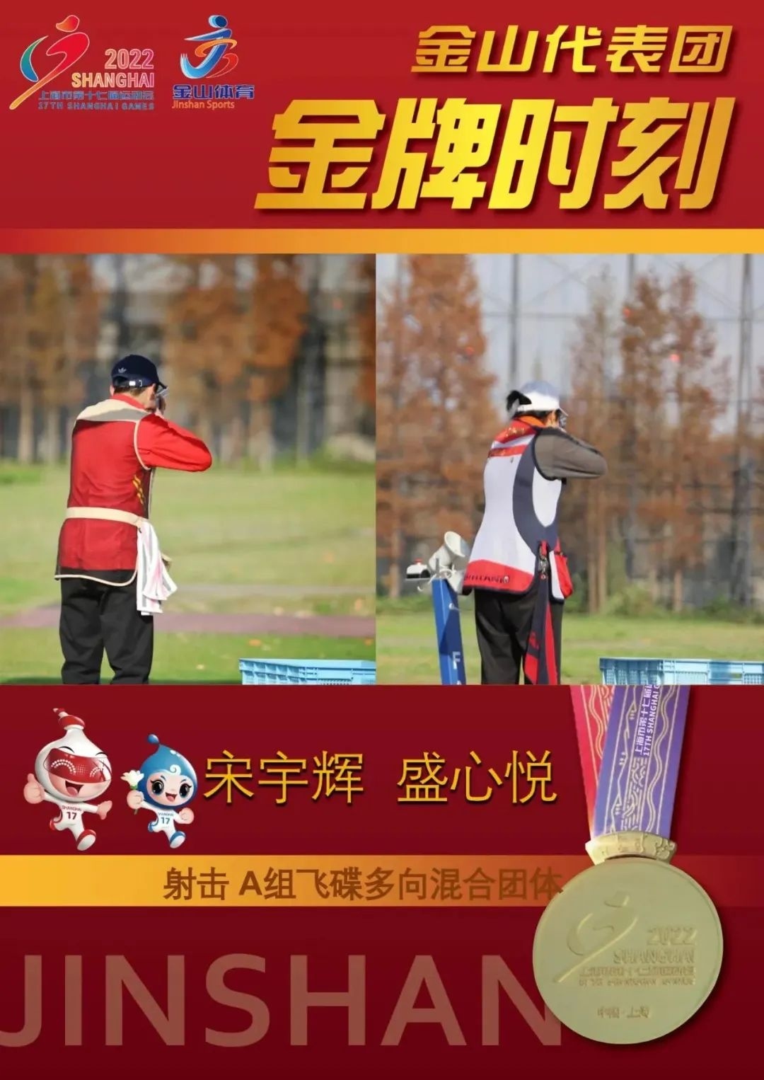 举枪、瞄准、射击、命中……赛场上,选手们屏气凝神、寻找良机。随着一声声枪响,被击中的飞碟在空中瞬间破裂。在11日射击A组飞碟多向混合团体的比赛中,我区的盛心悦、宋宇辉顶住了压力,二人凭借稳定发挥,在3轮比赛中合力命中93靶,最终赢得了该项目的冠军。本次比赛中,金山区射击队共获得1金、1银、2铜以及10个4-8名的好成绩!