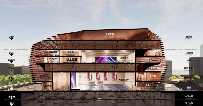把最好的空间留给市民、把最美的风景留给市民。会展中心首层配套服务功能,结合入口广场,成为徐汇滨江开放、共享的市民会客厅。同时,在二层、屋顶也为多种公共活动提供了室内外空间,可以俯瞰黄浦江,饱览两岸风景。
