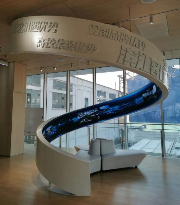 二楼一个蓝丝带形状的360度环保屏,展示了杨浦“三个百年”发展和“三区联动、三城融合”的创新实践,科技感满满。三楼的“滨江书房”,增设了科普阅读专区,各种科技类书籍陈列其中,让市民游客零距离接触各类知识。