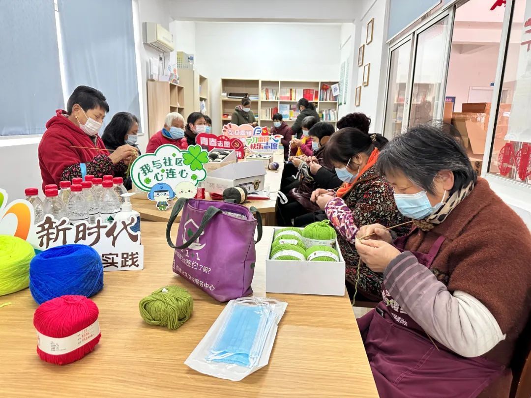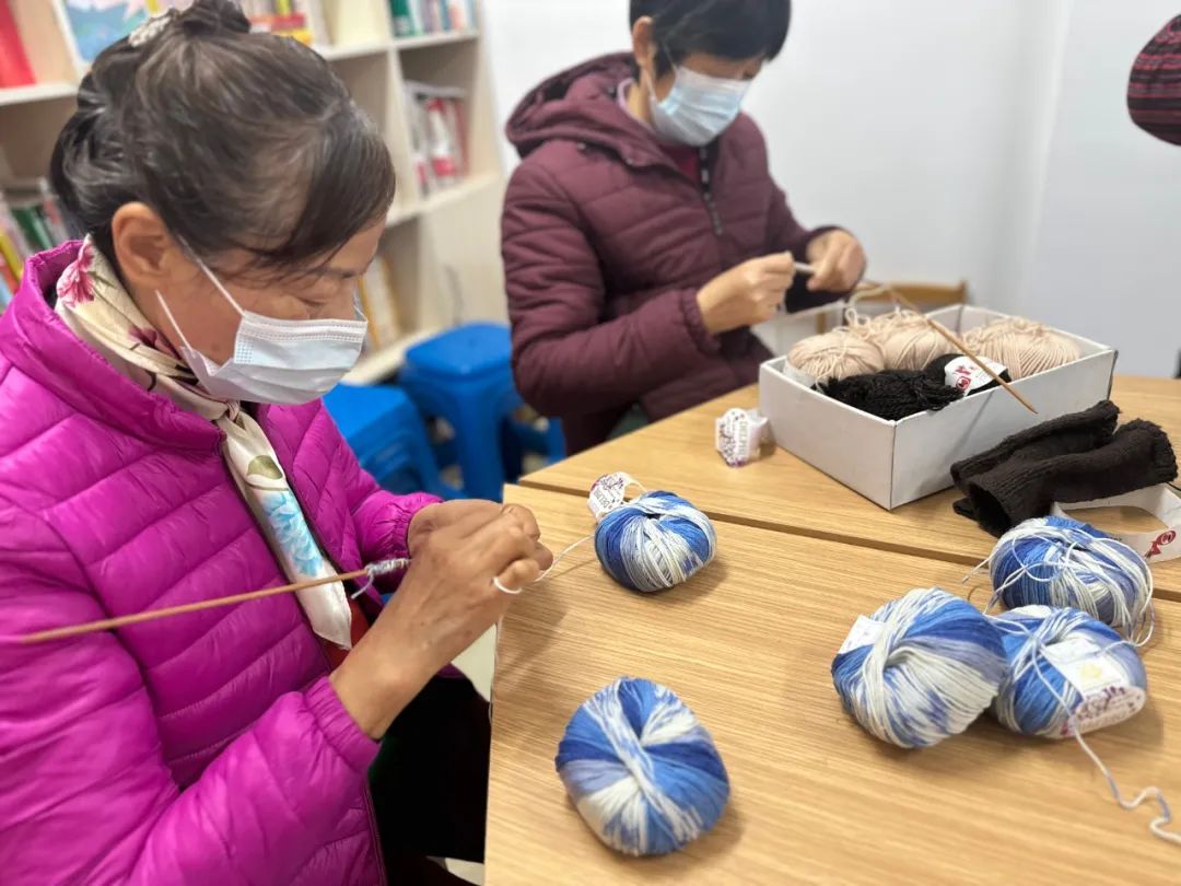 一大早,20位平均年龄在60岁的阿姨们围坐一圈,手拿一团线一双针,说说笑笑,手里忙活着编织“爱心牌”围巾。“我每年都参加,这个活动很好的,我们是中老年,帮助更老的人。”今年61岁的蒋阿姨几乎每年都会给社区老人织围巾,发挥心灵手巧的特长,为社区的老人送去温暖。