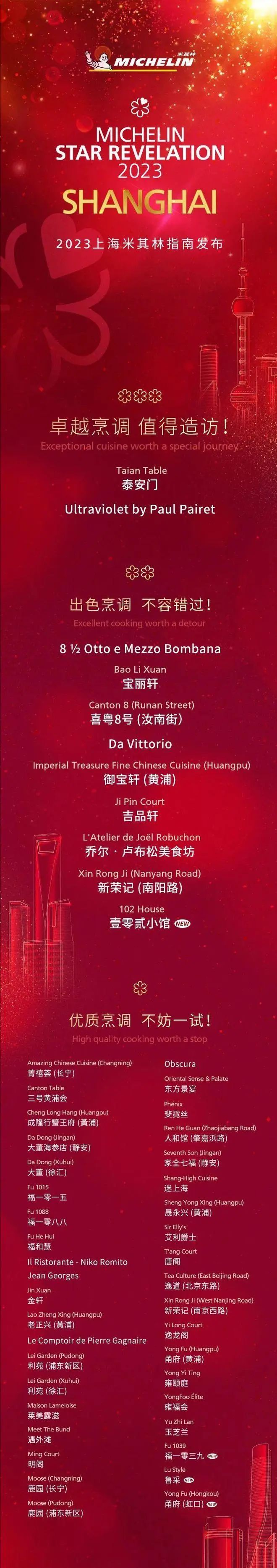 米其林中国区总裁、首席执行官叶菲表示,“今年是上海米其林指南发布的第7年,作为指南在中国内地的第一站,上海见证了米其林指南的寻味之旅。7年来,上海米其林指南榜单持续扩大,我们用更多的推荐餐厅来回应大家的期待,也希望未来能继续不负这种期待。”