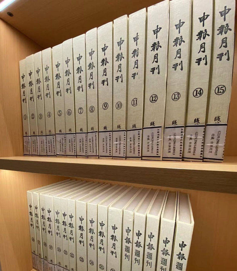 书院三楼“光的年轮”板块展出了年代较为久远的特色文献。其中,最具代表性的就是全套《申报》影印本,读者可随时来此翻阅上海的过往足迹。