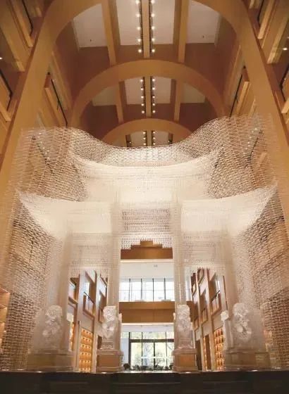 在书院里,“光启之门”艺术装置也相当吸睛,通过对土山湾博物馆镇馆之宝土山湾牌楼的艺术化再造,新的3D打印建造技术呈现了晶莹剔透的网格化牌楼新形象,与原本沉稳厚重的土山湾牌楼形成鲜明对比,呼应了用现代数字技术演绎传统工艺的主题。“光启之门”核心主题是科技与文化的融合,传统与未来的呼应,既表示对徐光启的致敬,又蕴含对未来的期盼。
