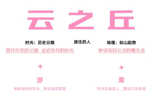 “云之丘”,寓意“祥云入里”,从起伏的山峦、漂浮的云朵中汲取设计灵感,打造风格自然灵动的口袋公园。“云之丘”三字分开解读,“云”指“历史云烟”,是娓娓道来的里弄历史故事。“之”是其中的人,是故事中穿梭时光的主角。“丘”指如山的风景,是如诗如画的未来生活场景。来这里,拨开历史云雾,走进隐于市井的时光,享受云淡风轻的慢生活。