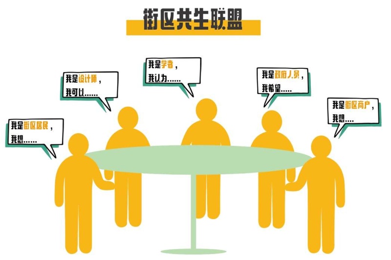 这个计划由“街区共生联盟”来策动。“街区共生联盟”由街区在地的商家、居民、政府人员、设计师和研究者等各类人群构成,是一个开放的街区组织平台,街区的每一个人都可以成为共创人,共同促进街区的发展。