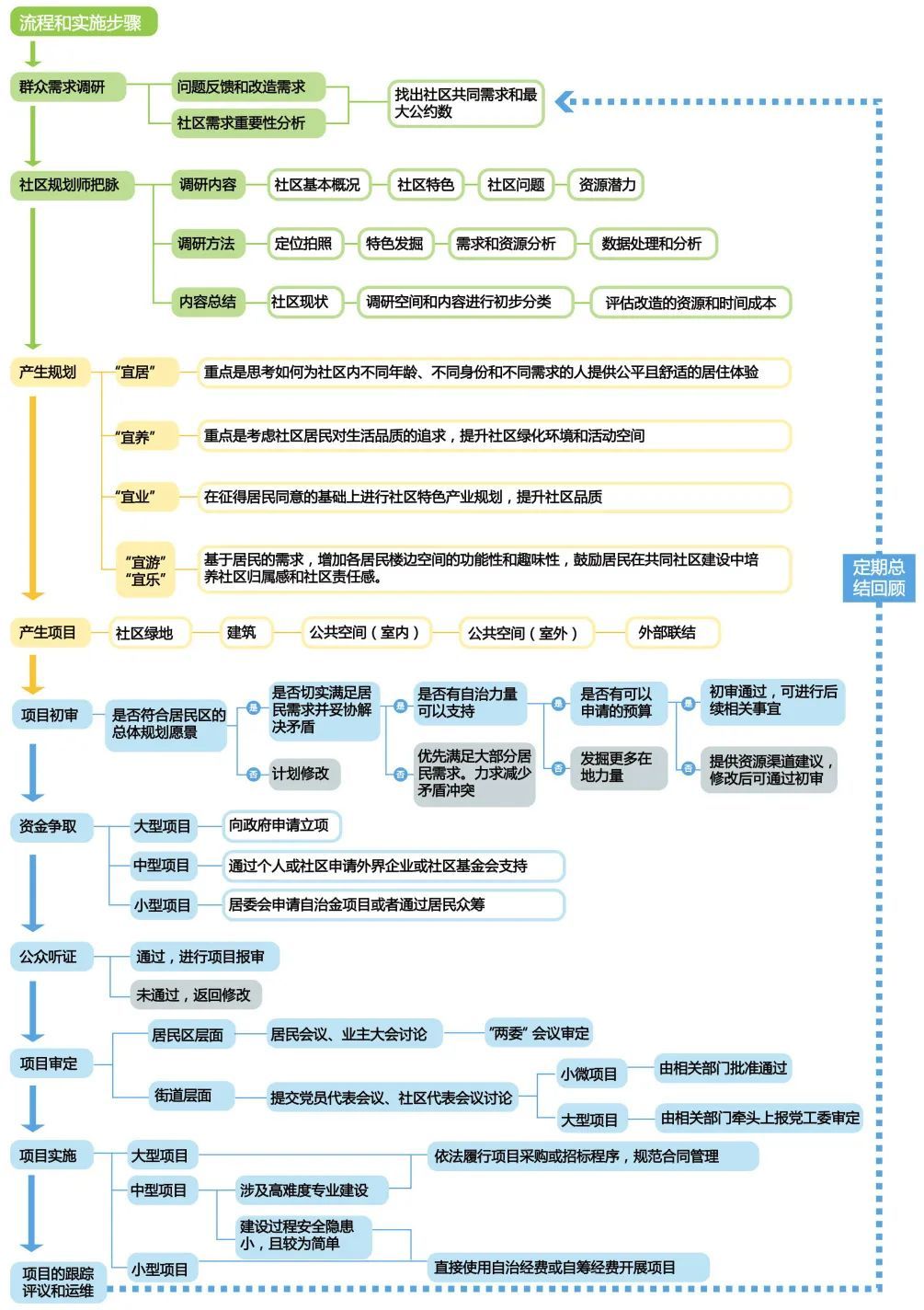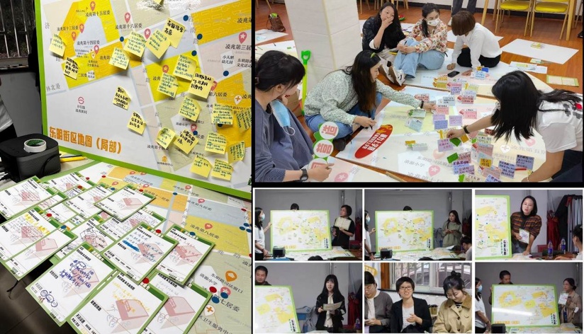 第一个层面,基于缤纷社区建设计划进一步建立东明路街道社区整体系统架构,包括三年更新行动计划、39个居民区的社区规划图以及参与式社区规划操作手册。