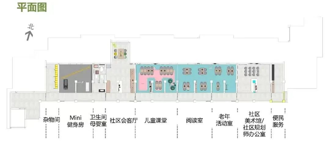 曾经被私自占用的架空层,通过改造成为居民共治共享的公共空间,延伸了居民的生活半径,讲述了对未来社区生活方式的理解和期盼。