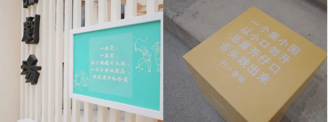 设计团队找寻了老弄堂中具有声音记忆的沪语童谣和老一辈的童年回忆九子游戏,并将这些元素融入场地设计,希望通过儿童游戏场的营造来激活社区活力,重现老上海文化。