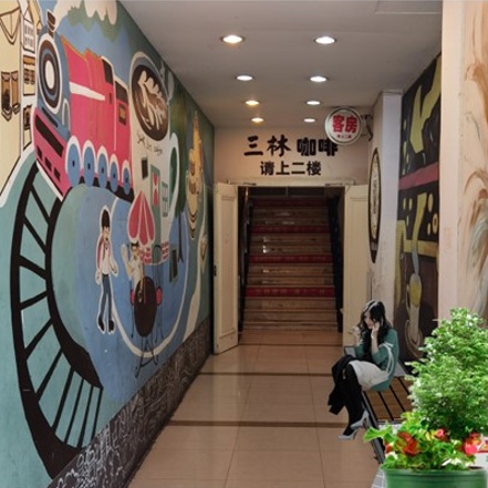 设计团队没有从视觉角度把三林咖啡门头变得多富丽、多醒目;而是由外而内的提升三林咖啡底层和楼道,甚至上层经营空间的公共性和文化性,从而聚集人气,凸显三林咖啡在社会层面的标志性,成为市民的会客厅。