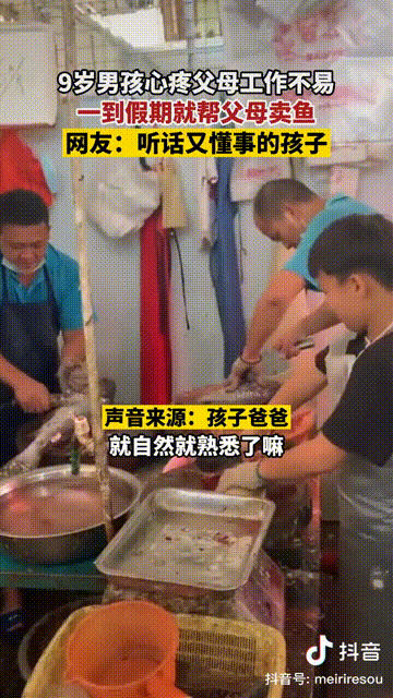 中山的一处菜市场杀鱼档口,9岁的他动作娴熟地抓鱼、刮鳞、切鱼片。