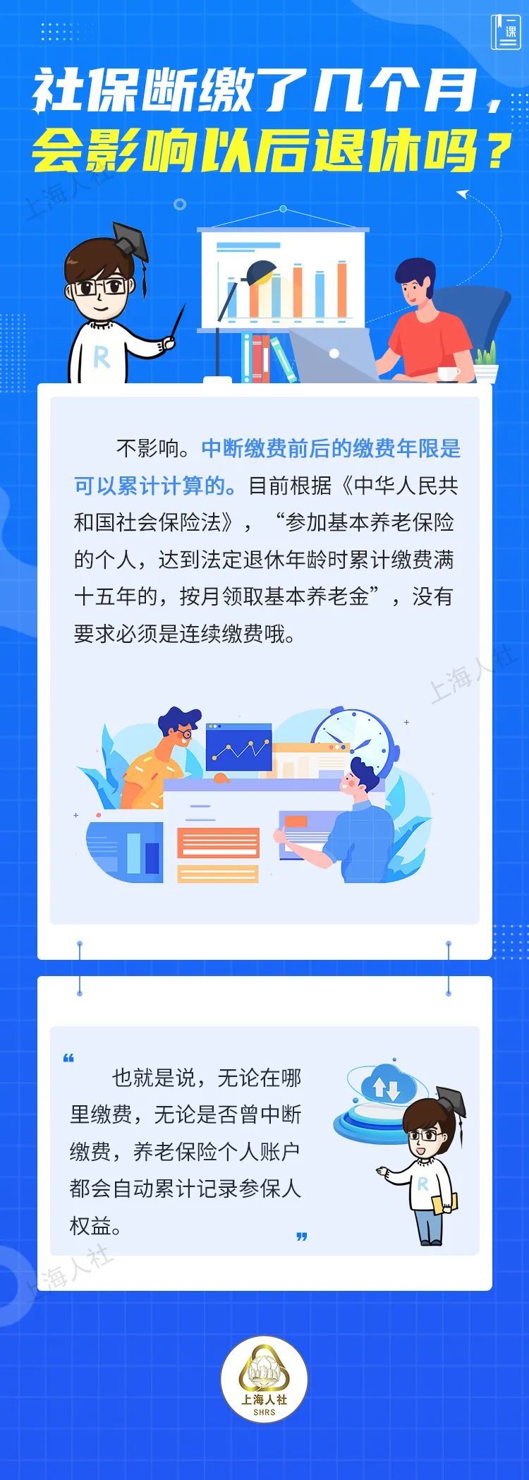 现在是“一课”集中答疑时间。网友“Xin”留言,自己之前一直在上海缴纳社保,后来断缴了几个月,最近又开始缴费了,会不会影响以后退休?关于这个问题,马上请出仁仁博士来解答。