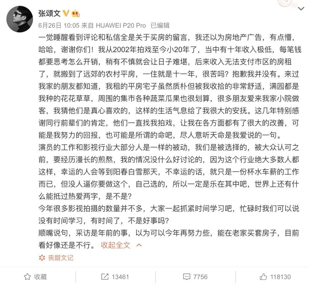“我的记录很不堪,曾经三年没戏可拍。有一年我全年收入就3万多,后来变成7万多、30多万,直到今天,我的所有收入,勉强够我支撑全年的正常开销。没了,真的。”这是张颂文的演员生涯,没赚到什么钱,没什么名气,甚至买不起房。